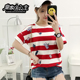 皇家小公主韩版宽松短袖t恤女上衣学生条纹印花打底衫夏装新款潮