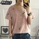 皇家小公主V领短袖T恤女装夏装2017新款女宽松韩范百搭印花上衣潮