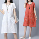 小清新棉麻连衣裙夏装新款宽松短袖亚麻连衣裙大码显瘦大摆中长裙