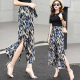 碎花雪纺阔腿裤女裤夏季新款韩版开叉九分裤薄款高腰印花宽腿裤潮