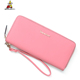 稻草人女士长款粉色钱包真皮新款时尚日韩头层牛皮多卡位青年钱夹