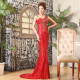 2014年新款红色鱼尾单肩修身新娘敬酒伴娘宴会晚礼服长款