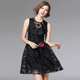 无袖连衣裙春秋新款2017夏季女土时尚修身显瘦欧美a型网纱小黑裙