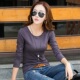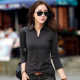 春秋装新款女装韩版修身纯色棉翻领V领长袖t恤女小衫打底衫上衣
