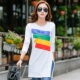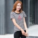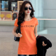 韩版女装棉条纹中长款修身字母短袖女t恤夏季打底衫半袖体恤裙