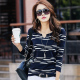 春款女士印花韩版棉宽松大码条纹中长款长袖女t恤打底衫上衣体恤