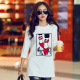 春季韩版女装图案印花棉宽松大码中长款长袖女t恤打底衫体恤裙