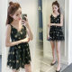 2017春夏季新款韩版吊带无袖黑色蓬蓬连衣裙女中长款网纱a字裙子