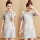 2017夏季甜美蕾丝钩花网纱吊带连衣裙两件套短袖中长款仙女公主裙