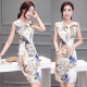2017夏装新款秋水哥弟气质淑女长裙印花收腰显瘦雪纺短袖连衣裙潮