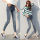 2017春夏韩国蓝色高腰膝盖破洞牛仔裤女小脚裤弹力显瘦铅笔九分裤