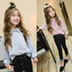 2017春装新款女童宝宝儿童装 韩版长袖纯棉淑女花朵纯色衬衫衬衣