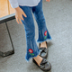 2017春季新款女童宝宝儿童装韩版修身复古刺绣磨毛边喇叭裤牛仔裤