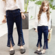 2017春季新款女童儿童装韩版修身柔软潮蕾丝边流苏喇叭裤牛仔裤