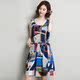 2017夏季新款韩版印花连衣裙女 圆领无袖系带裙子纯棉背心长裙
