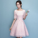 伴娘服短款2017新款时尚粉色蕾丝小礼服姐妹连衣裙礼服女宴会修身
