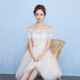伴娘服短款2016新款秋冬时尚香槟色一字肩蓬蓬裙显瘦宴会小礼服裙