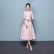 伴娘服短款2016新款秋冬香槟色显瘦粉色宴会晚礼服年会连衣裙短款