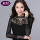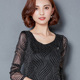 黑色网纱打底衫女长袖春秋修身V领性感蕾丝薄款大码T恤加绒上衣潮