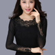 2017春装新款韩版修身黑色网纱打底衫女长袖蕾丝立领性感t恤上衣