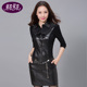 2017春装新款pu中长款皮衣连衣裙包臀裙子长袖修身打底皮裙短裙女
