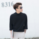 韩国春装百搭纯色半高领领七分袖t恤 男 宽松打底衫上衣 男 韩版