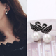 日韩气质S925纯银女人的耳钉防过敏天鹅耳环简约长款珍珠镶钻耳饰