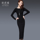 欧莉瑾2017春秋装新款女装时尚长款连衣裙修身羊毛针织长裙毛衣裙