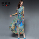 民族风女装2017新款品牌真丝连衣裙两件套桑蚕丝印花长裙显瘦宽松