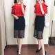 2017夏装新款性感露肩雪纺衫女装半身裙显瘦夏季时尚百搭两件套装