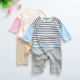 童装男女儿童宝宝纯棉条纹爬服哈衣长爬连体服套袖拼接两件包邮