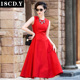 18cdy2017春夏新款短袖连衣裙女装欧美结婚红色镂空蕾丝礼服长裙