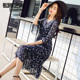 文艺复古连衣裙两件套女2017春装新款七分袖雪纺碎花中长裙子套装