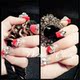 包邮 奢华红色女人头新娘光疗美甲纯手工甲片 镶钻短款珍珠假指甲