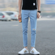 夏季破洞浅色牛仔裤男修身小脚乞丐裤子潮流9分小脚裤韩版九分裤