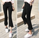 2017春夏新款黑色高腰显瘦不规则毛边打底裤 韩版微喇叭裤子女