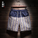 夏季日系沙滩裤男短裤棉条纹拼接牛仔民族风亚麻大码五分裤学生潮