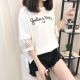 2017新款韩国宽松夏装短袖t恤女刺绣字母蕾丝拼接百搭圆领上衣服