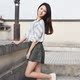 夏季日系宽松轻薄露肩五分袖印花衬衣