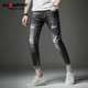 卡丹威男士牛仔裤秋冬款修身型破洞泼墨青少年牛仔裤小脚 男潮直