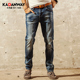 卡丹威男士牛仔裤秋冬修身小脚裤青年欧美复古做旧长裤子 男 直筒