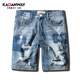 卡丹威新款夏季破洞补丁牛仔短裤男宽松5五分裤复古磨烂中裤潮男