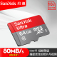 SanDisk闪迪 microSD存储卡 TF 64G Class10 高速tf64g手机内存卡