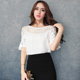 2016夏季女装新款时尚韩版白色短袖上衣潮荷叶袖镂空蕾丝衫雪纺衫