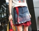 欧洲站2017春夏季新款格纹拼接假两件刺绣字母牛仔短裙半身裙女潮