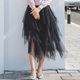可乐衣2017夏季新款不规则蕾丝网纱裙女A字裙中长裙纱裙半身裙子
