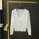 春季新款针织衫女开衫韩版花边修身显瘦百搭短款上衣薄毛衣外套女