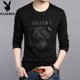 花花公子长袖t恤男士修身圆领纯色体恤衫春季中青年男装打底衫