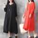 春秋新款时尚民族风宽松复古大码带兜棉麻长款袍子中长款连衣裙潮
