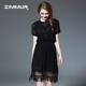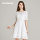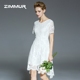 ZIMMUR2017年夏季新款镂空蕾丝高腰圆领拉链短袖连衣裙A字裙女